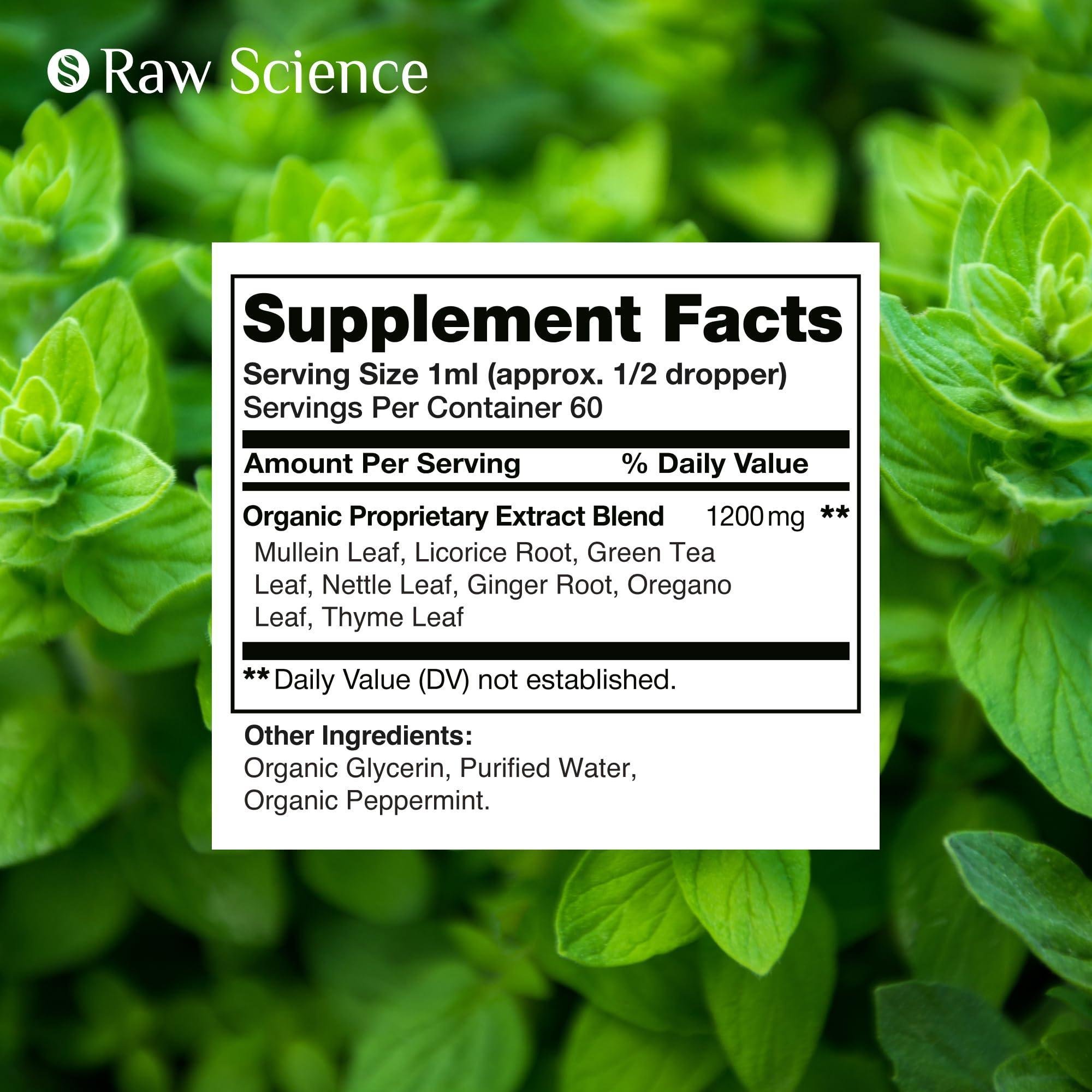 2.Bronchial support, which may lower wheezing. RESPIRATORY SUPPORT - Enhance your respiratory health with Raw Science Mullein Drops, packed with Lcorice and Stinging Nettle leaf for immune defense. Licorice root extract and organic Nettle leaf contribute to respiratory lung health, supported by the power of Oregano for comprehensive respiratory care. HEALTHY LUNGS - Harness the Mullein extract organic drops, featuring mullein leaf, to promote lung health and act as a lung strengthener.